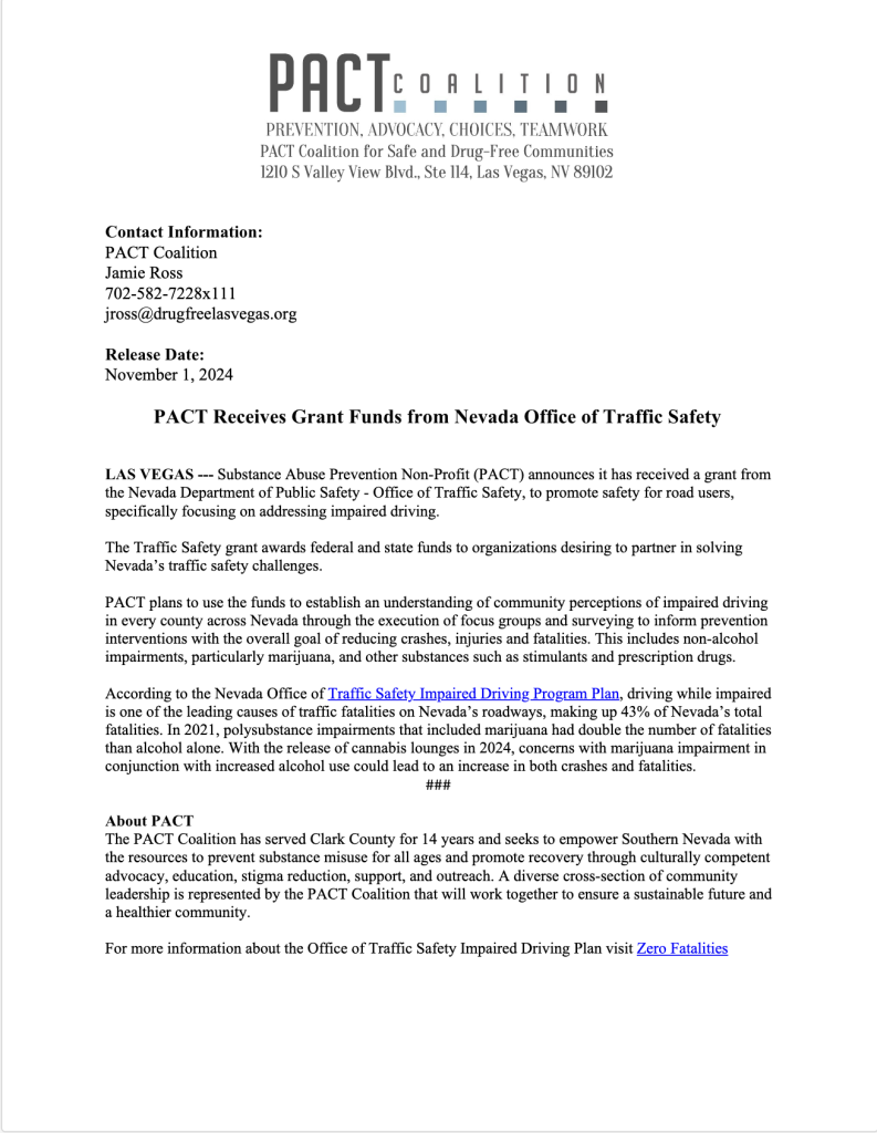 PACT Coalition general membership meeting is every third Wednesday of every month at 11:30a.m. To learn more contact Novlette Mack at (702) 582-7228 x105.